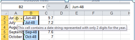 I will confess some uncertainty over the official standing of the “date string” phrase, but that’s my problem. In any event, clicking the exclamation mark uncorks two Convert options, and because all our dates are appear to be of 20th-century vintage, click Convert XX to 19XX (I don’t recall seeing these possibilities before either). Proceed and our problem range has been reformed into real, obedient, well-meaning dates.
