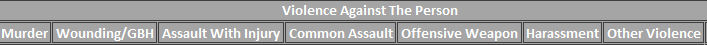 Just note, by way of a concluding observation here, that the wards data as we received them overarch the records with supercategories, e.g., Violence Against the Person, Sexual Offenses, Robbery, etc.; but at the very outset we segregated these from the rest of the data precisely because they overarched them, in merged cells that would have, had they remained “in” the data, layered what in effect would have a second set of field headings upon the data, e.g.