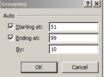 Enter the problem. Initiate a Group Selection for Finish Time and click off the Months grouping default. Then tap the tandem of Seconds, Mintues, and Hours (note each of these can be clicked independently of the others – don’t press the Ctrl key as you click). But now what?