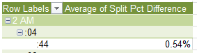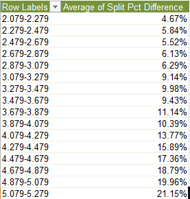 Values: Split Pct Difference (Average; again format Percentage to two decimals)