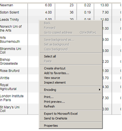 I’m not sure I can answer those questions, but eager to slake the acquisitive pangs of my hard drive, I clicked the petite Get the data link spaced below the Guardian table, and was taken nowhere. A pair of right clicks atop the table – one, to spark an internet-familiar menu, the other, to stab at the Export to Microsoft Excel option did what it usually does, nothing: