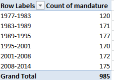 Row Labels: Mandature (or Term)