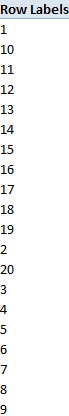 And why the VALUE? Because absent that revisionist touch, the results would assume text form, by itself not dire; we’re not interested in adding arrondissements, after all. But reel text-formatted arrondissements into the Row Labels area of a pivot table and they’ll sort like this: