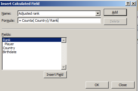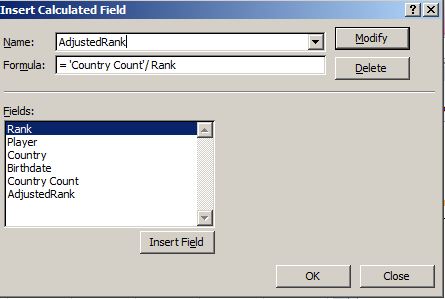 And it’s here where we devise the calculated field, which I’m calling AdjustedRank, e.g.: