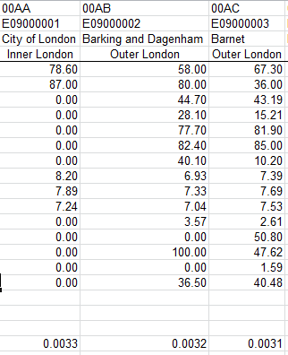 And another question, as long as I’m asking: what do we make of Sheet 1’s borough population totals in the in row 5, e.g. the expression for Barnet in E5?: