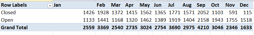 In any case, the Left Hander numbers declare an August plurality, though consecutive months plot a rather jittery trajectory (this is my pivot table):