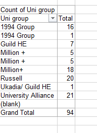 No, that’s not what we want to see, because Excel continues to aggregate data for all the years, bunching the post-1936 birth years into a residual category that completely confounds the outcome we’re seeking. But by clicking the filter down arrow hard by the Row Labels title and ticking >1937 off, we get